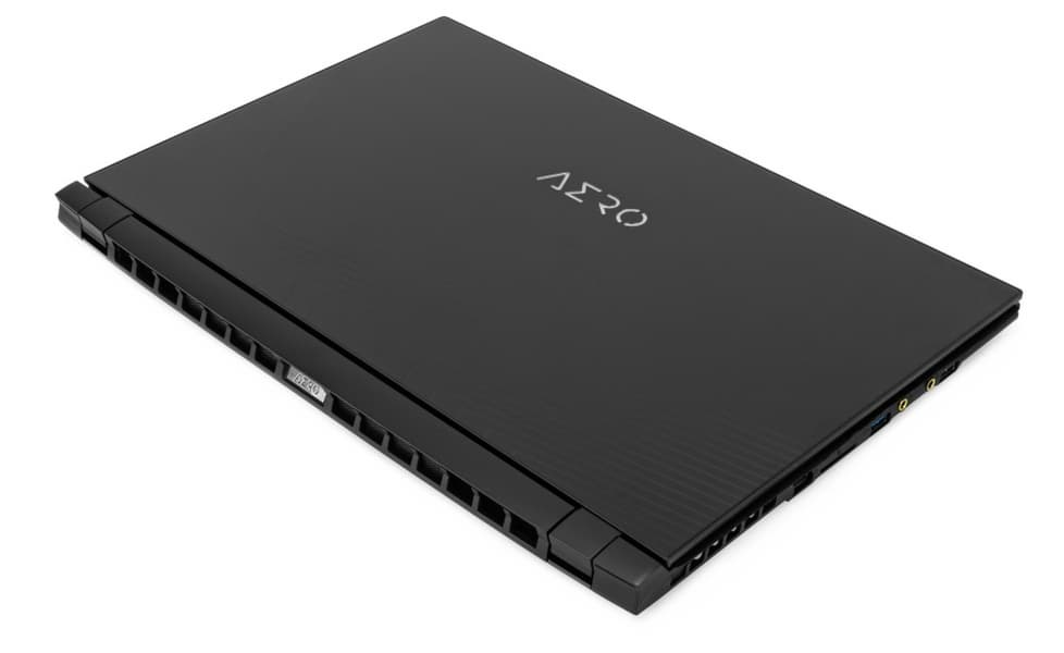 Корпус героя обзора выполнен полностью в чёрном цвете, в виде исключения – логотип Aero и клавиатура, но об этом немного позже. Практически все элементы корпуса выполнены из металла, кроме некоторых вставок. Габариты модели составляют 396x270x21,4 мм при массе изделия около 2,5 кг. С учётом достаточно массивного и тяжёлого блока питания, каждый день возить на работу ноутбук можно, однако, предпочтительнее передвигаться на личном транспорте в том числе и по причине пандемии Само-собой парковка желательна в шаговой доступности от дома и офиса.