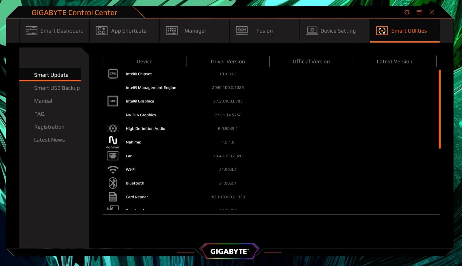 Среди предустановленных приложений безусловный интерес представляет Gigabyte Control Center. Это простое в использовании ПО для управления большинством ключевых параметров ноутбука, а также для мониторинга состояния системы.