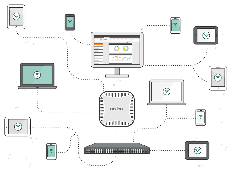 Беспроводные точки доступа Aruba 802.11ac обеспечивают превосходные характеристики Wi-Fi для удовлетворения потребностей вашей сети по плотности и производительности — они могут быть развернуты как под управлением контроллера (ArubaOS), так и без него (InstantOS) в зависимости от дизайна, охвата и масштаба беспроводной сети.