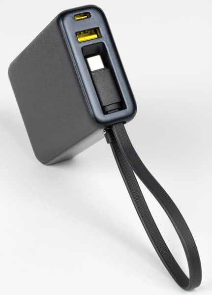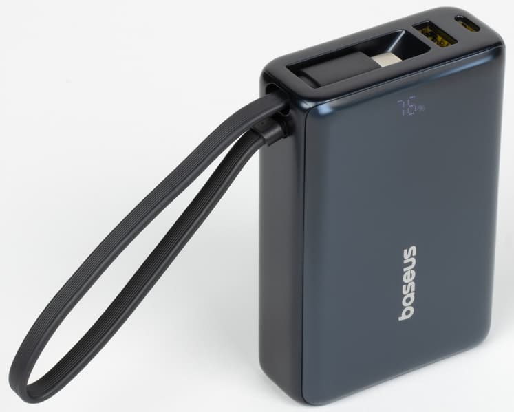 Наличие встроенного кабеля повышает удобство использования, особенно с учётом возможности сделать этот кабель петлёй для переноса или подвеса и заряжать через него батарею самого пауэрбанка.