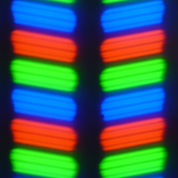 В данном смартфоне используется матрица типа IPS. Микрофотографии демонстрируют типичную для IPS структуру субпикселей: