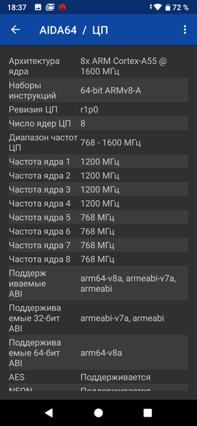 - SoC UNISOC SC9863A, 8 ядер: 4×Cortex-A55 @1,6 + 1,2 ГГц