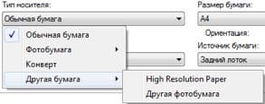 Кроме этого, есть неопределенная «Другая фотобумага», а также некая «High Resolution Paper»: