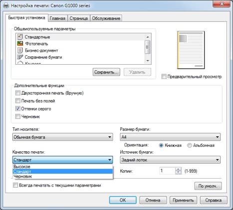 Поэтому оптимальной с точки зрения качества и времени печати также является установка «Стандарт».