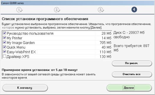Установка ПО, которую мы проводили с прилагаемого диска, каких-либо затруднений не вызывает. Как обычно, сделаем предупреждение: принтер подключается к компьютеру USB-кабелем не сразу, а только по запросу программы установки.