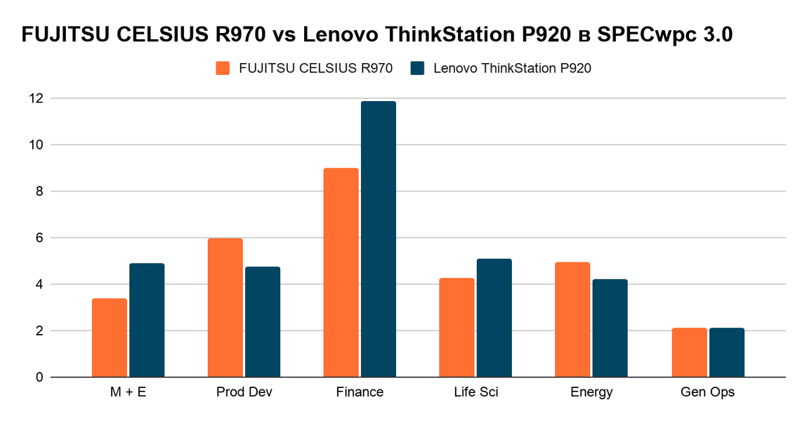 Независимая некоммерческая организация Standard Performance Evaluation Corporation (SPEC) провела сравнительный тест рабочих станций, и первое место среди топовых систем ТОП-5 основных вендоров разделили решения Fujitsu и Lenovo. Для их сравнения применяли SPECwpc 3.0 — бенчмарк, оценивающий производительность рабочих станций. Топовые рабочие станции основных вендоров тестировались под более чем 30 видами нагрузок, содержащих 140 тестов, которые имитируют практические сценарии работы в разных профессиональных областях.