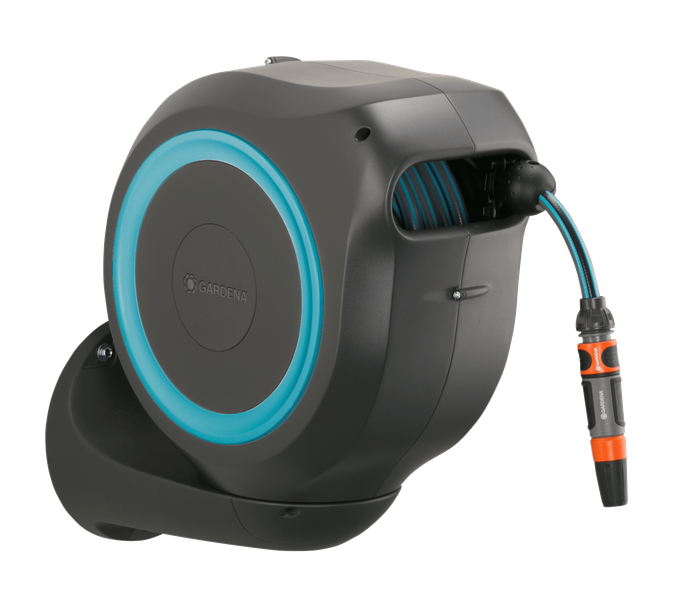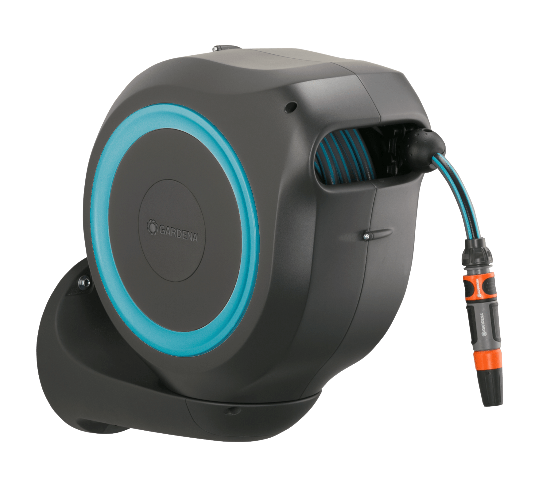 Самая частая проблема со шлангами у садовников — перекручивание. Шланг нужно постоянно сматывать и разматывать в правильном направлении и следить за ним во время полива. С настенной катушкой таких трудностей нет — устройство подает шланг равномерно благодаря высококачественному пружинному механизму. Автоматическая катушка оснащена подвижным кронштейном, за счет которого прибор можно поворачивать на 180°.
