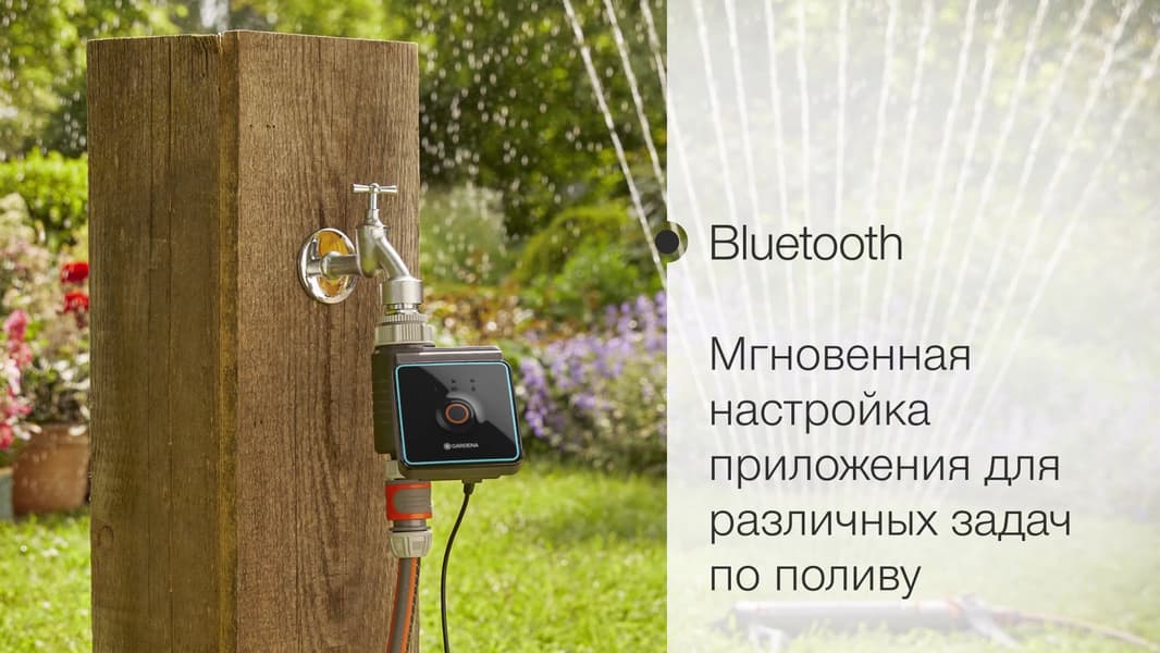 Ни один фильм не может начаться без постановщика, который будет руководить процессом от А до Я — в умном садоводстве им выступает Bluetooth-таймер подачи воды. На нем вы можете настроить автоматическую систему полива и регулировать ее с телефона. Таймер подключается напрямую к крану, и его не нужно прятать под навесом или покупать отдельный короб — ему не страшны ни солнце, ни ветер, ни дождь.