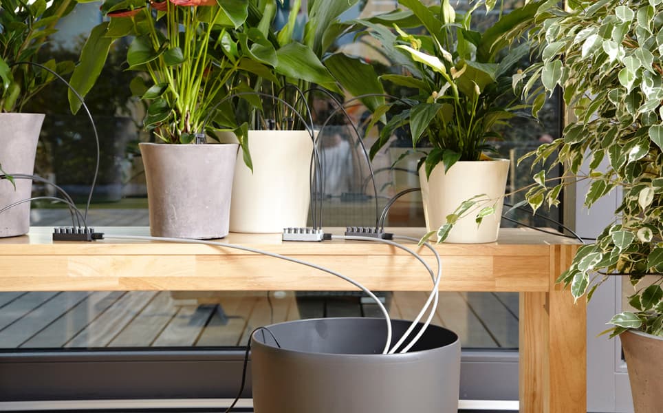 Нежный полив обеспечивает мастер-блок 1000, который очищает до 1000 литров воды в час и снижает давление в системе до 1,5 бар. Базового комплекта хватит для полива 7 горшечных растений и 3 цветочных ящиков. В комплект входит 9 внутренних капельниц, пропускающие до 2 л/час, и 7 регулируемых капельниц, диапазон пропускания которых варьируется от 0 до 10 л/час. И чем аккуратнее и равномернее вы поливаете растения, тем лучше они будут цвести.