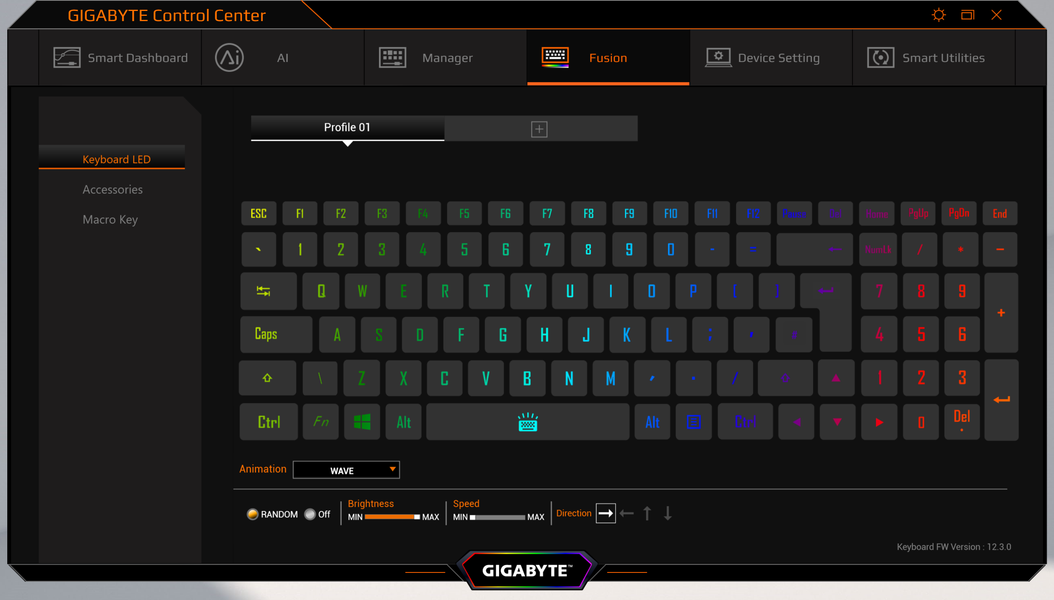 Раздел Fusion открывает доступ ко всем настраиваемым параметрам клавиатуры. Предусмотрена возможность настройки не только подсветки группы клавиш или каждой клавиши по отдельности, но и их функциональности.