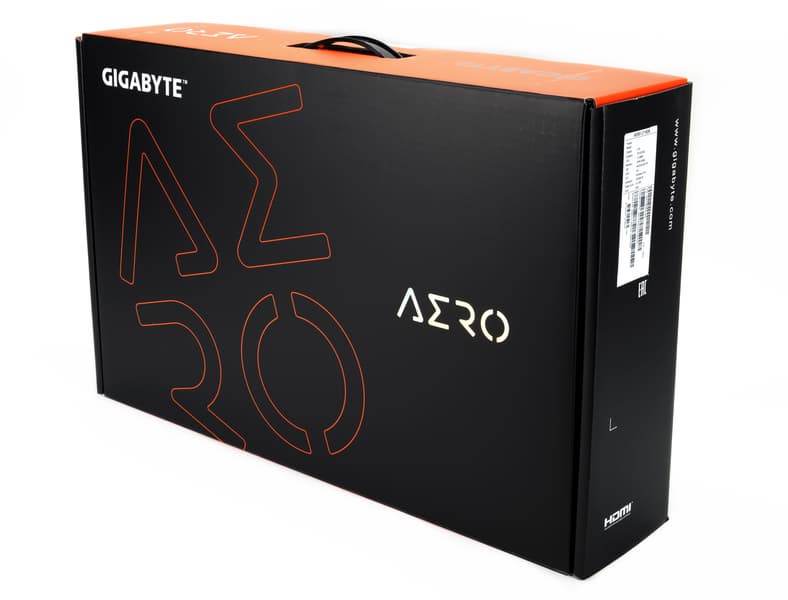 AERO 17 HDR XD в достаточно большой коробке. Это обусловлено не только размерами ноутбука и его внешнего блока питания, но и запасом свободного пространства внутри коробки для безопасности при транспортировке.