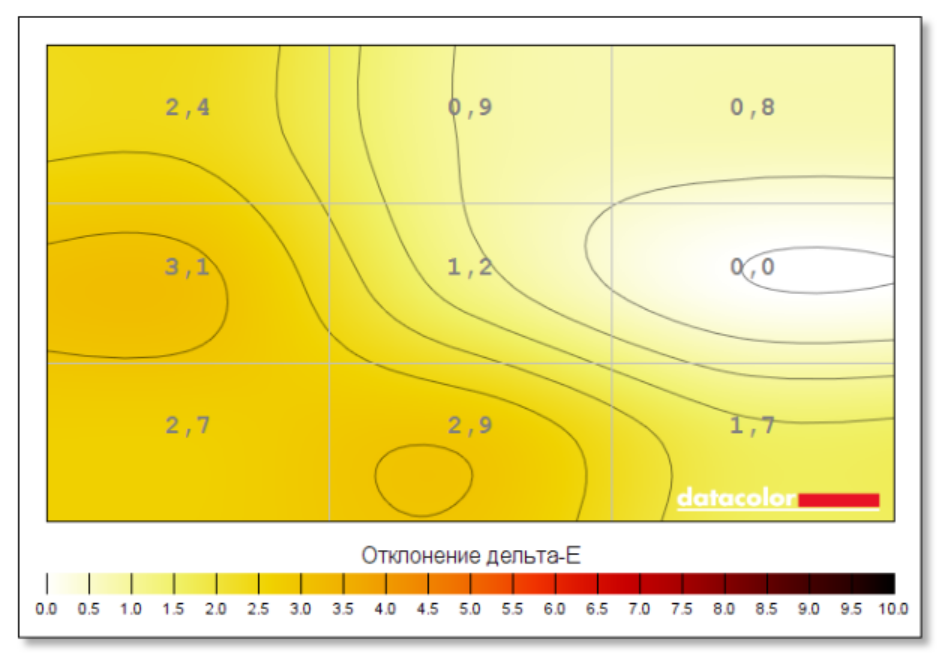 С отклонением цвета ситуация несколько хуже – до 3.1, но вполне допустимая (желательно значение менее 3).
