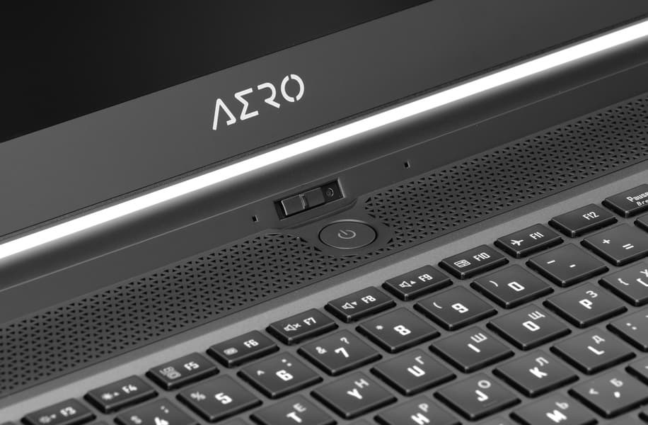 Ещё один элемент подсветки – логотип AERO на крышке ноутбука. Применительно к нему можно варьировать цвет и стиль подсветки, поэтому этот логотип будет всегда светиться и всегда только белым. Уровень свечения не яркий, поэтому мешать окружающим не будет.