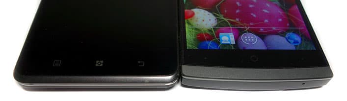 Как Lenovo P780, так и Highscreen Boost 2 SE отказались от распространенной установки индикатора события рядом с разговорным динамиком. В смартфоне Lenovo светодиод располагается прямо на площади лицевого динамика. В Highscreen Boost 2 SE реализовано более оригинальное решение – индикатор интегрирован с центральной клавишей сенсорной панели под экраном.