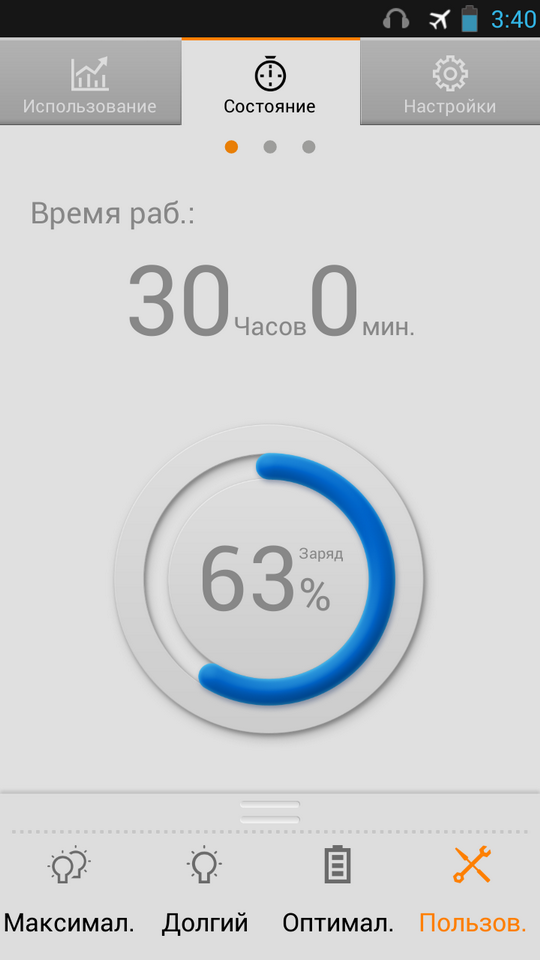 Подобная программа есть и в Lenovo P780, здесь предлагаются четыре сценария энергосбережения, а также прогноз оставшегося времени при определенной нагрузке – видео, музыке и т.д.