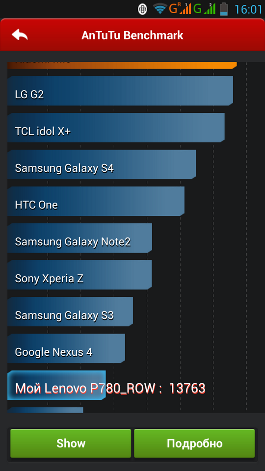 Результаты тестов Lenovo P780