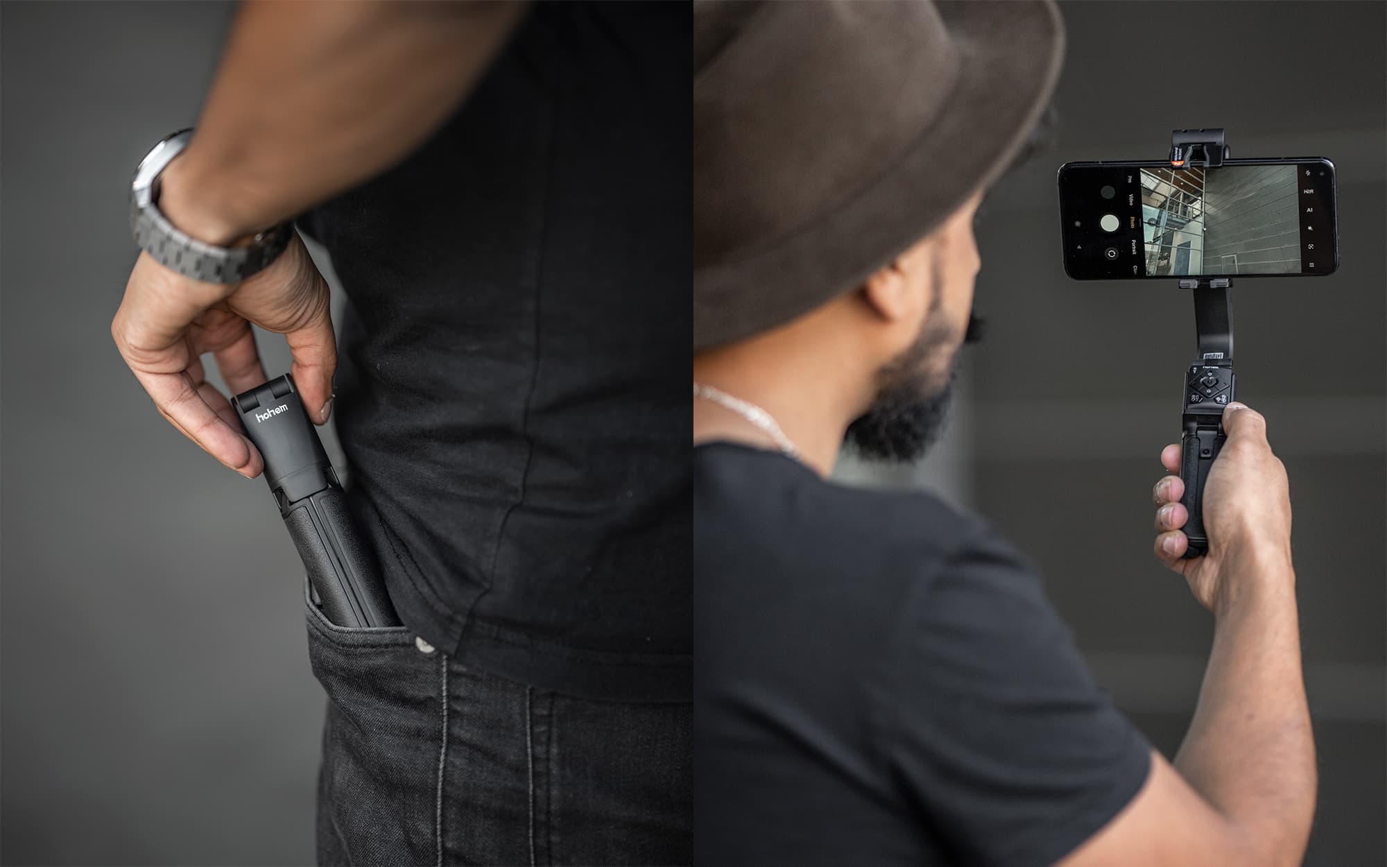 Прежде чем перейти к предмету рассказа, мы хотим сообщить вам, почему мы создали этот продукт. Уверены, все знакомы с селфи-палкой и знают, что с ней можно снимать себя под разными углами, выдвигая рукоятку. С ростом популярности коротких видео и влогов люди начали динамично показывать свою жизнью на YouTube, Instagram, TikTok и многих других социальных платформах. Поэтому растет число людей, которые используют селфи-палки для съемки видео. Однако обычная селфи-палка не похожа на подвес для смартфона, у нее нет моторов для стабилизации по нескольким осям, поэтому она не может обеспечить плавную съемку. Поэтому в Hohem как в ведущей компании в индустрии стабилизаторов мы думаем, что мы можем создать продукт, который будет лучше справляться с задачей.