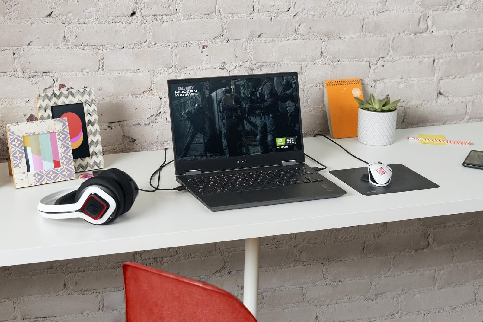 Ноутбук довольно компактный: его толщина составляет всего 2,3 см. А благодаря скошенным углам корпуса он смотрится еще тоньше. Вес устройства не доходит до 2,5 кг, что делает 15-дюймовый OMEN достаточно мобильным устройством. Его вполне можно взять в офис и не бояться, что игровой ноутбук будет смотреться неуместно в формальной обстановке.
