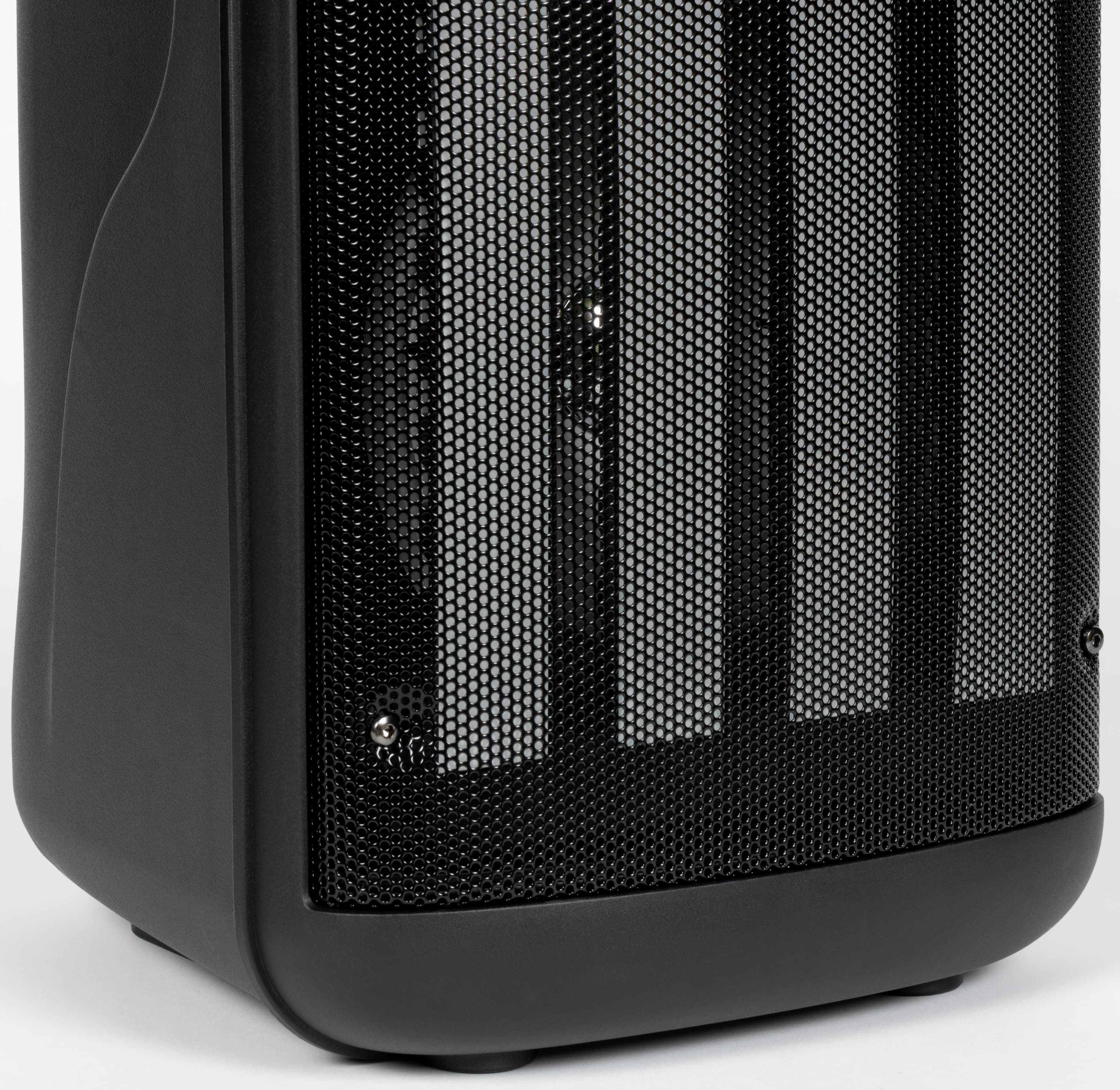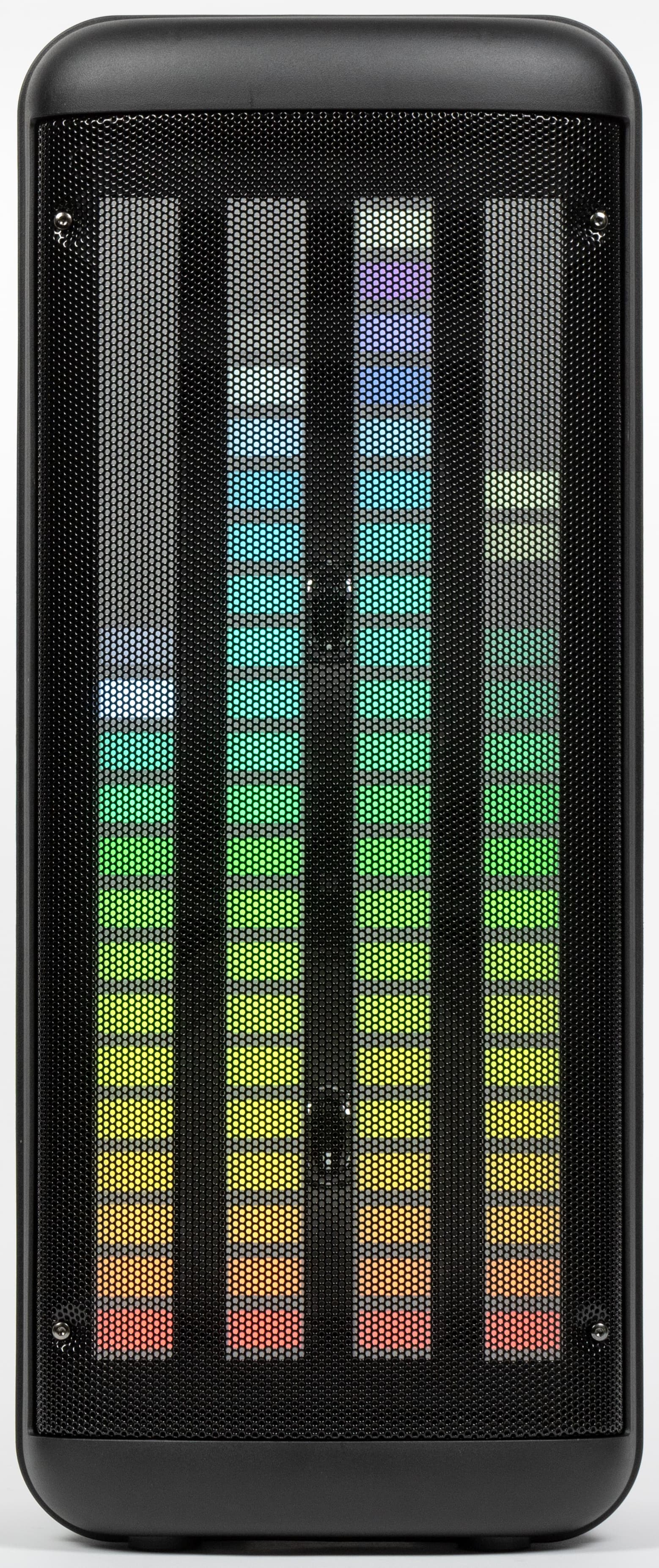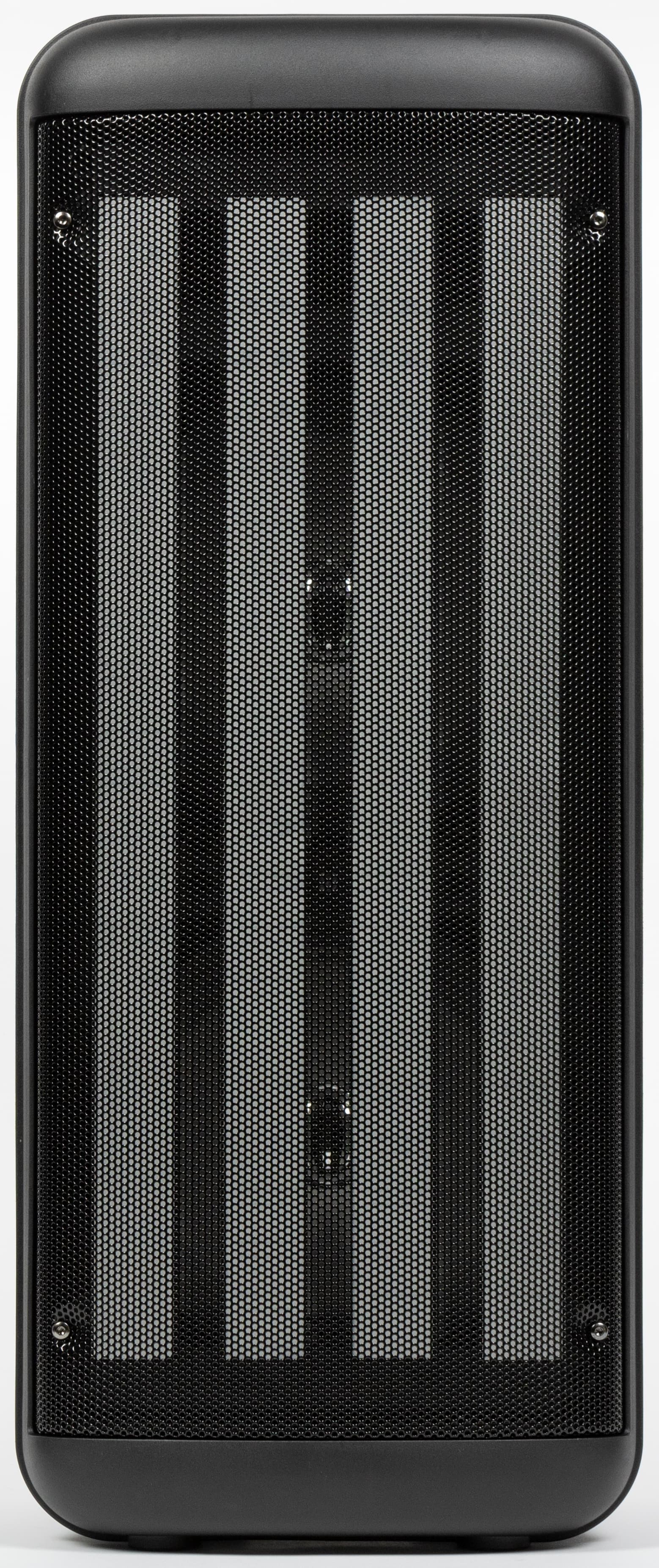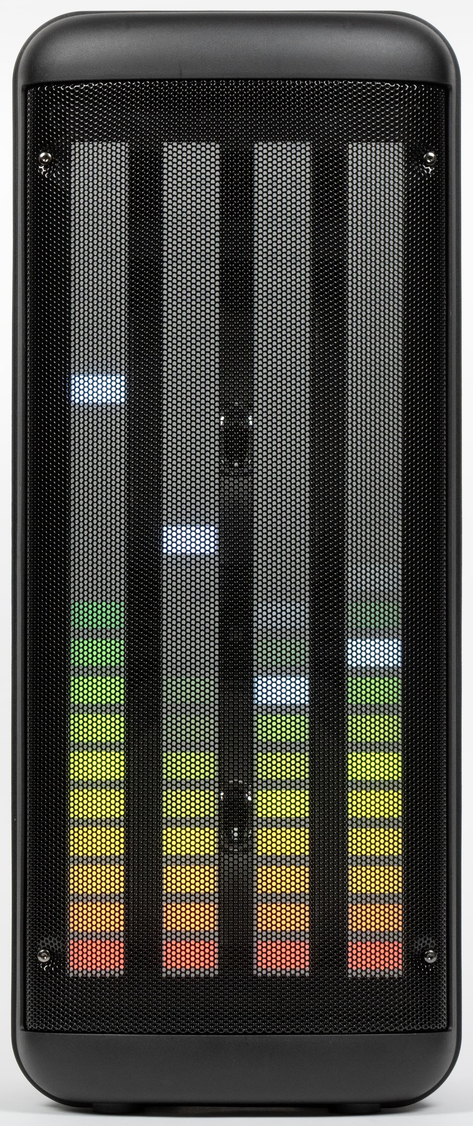 Краеугольным камнем дизайна колонки, безусловно, является подсветка. Форма корпуса навеяна профессиональной концертной акустикой.