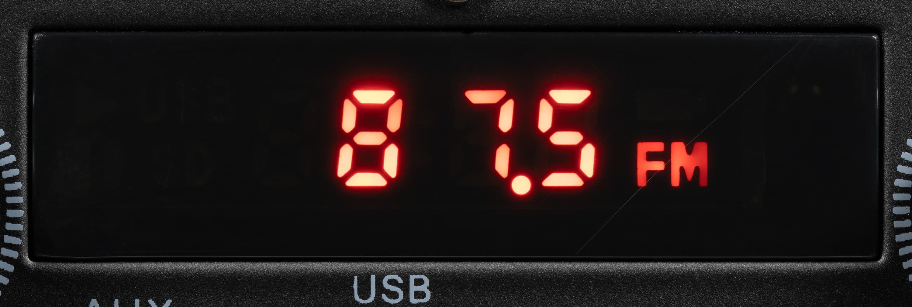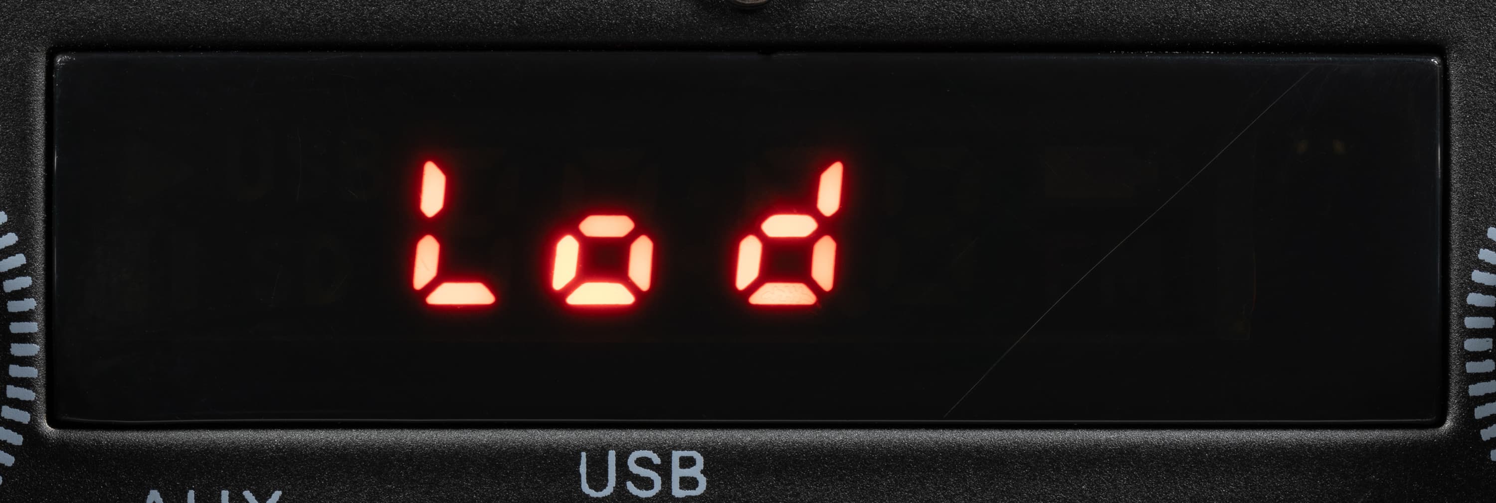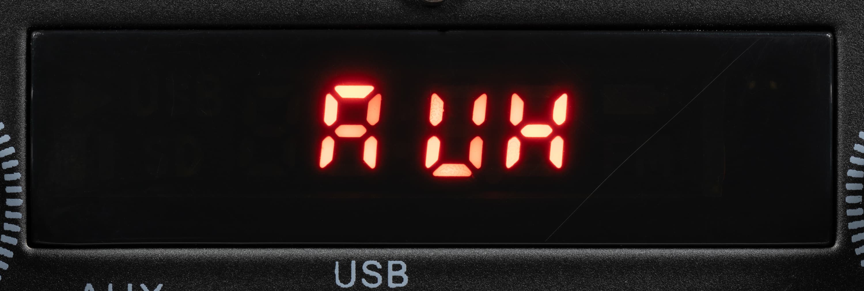 Экран состоит из четырех 7-сегментных индикаторов, для индикации включения радиоприемника и встроенного плеера предусмотрены специальные значки.
