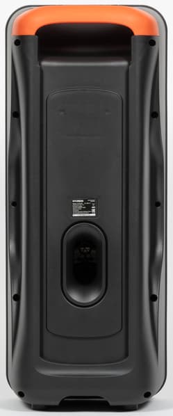 Овальный раструб фазоинвертора на задней панели закрыт изнутри пластиковой решеткой, препятствующей попаданию посторонних предметов внутрь корпуса.