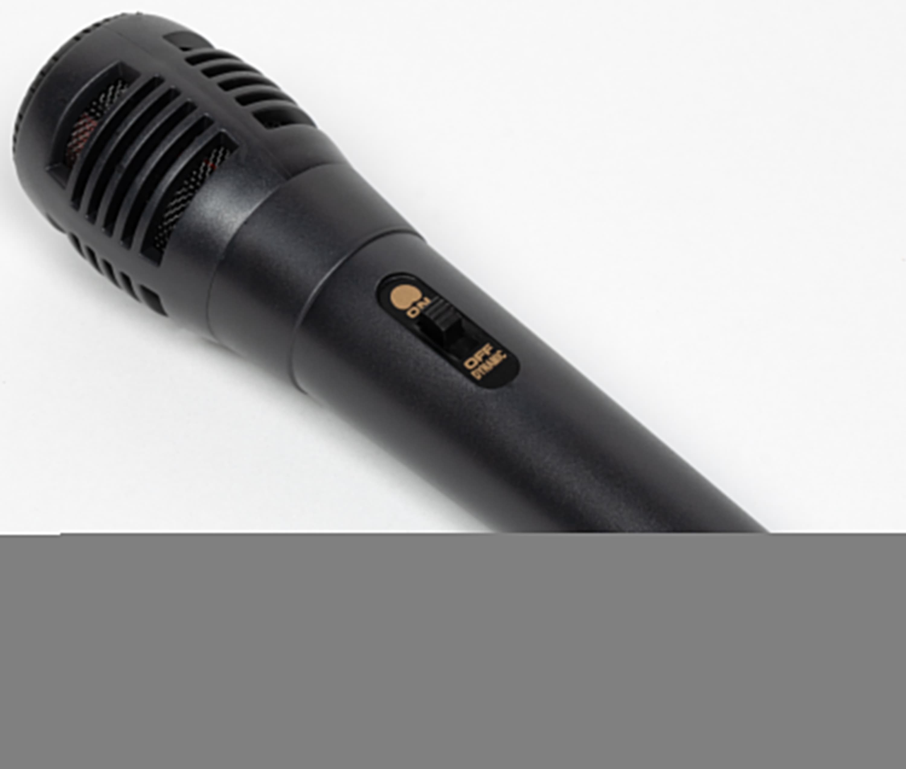 Микрофон небольшой и очень легкий, корпус выполнен из пластика. На боковой части размещен выключатель, позволяющий легко отключить звук микрофона, не подходя к колонке.