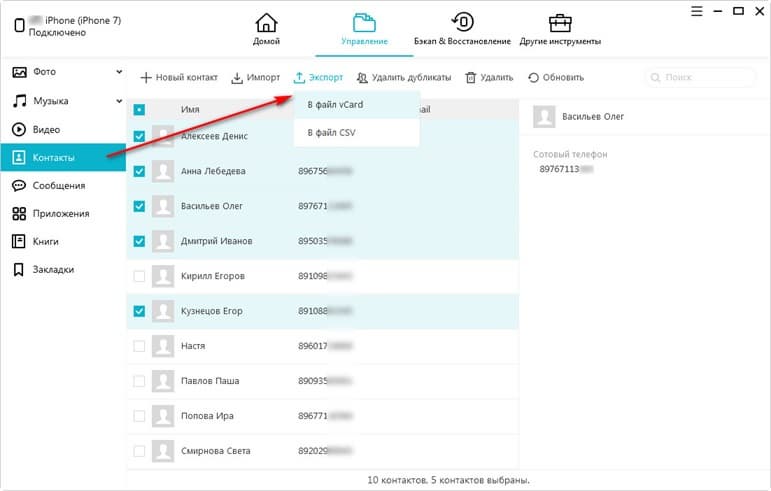 - Выборочно управлять фотографиями, видео, приложениями и книгами на iPhone.