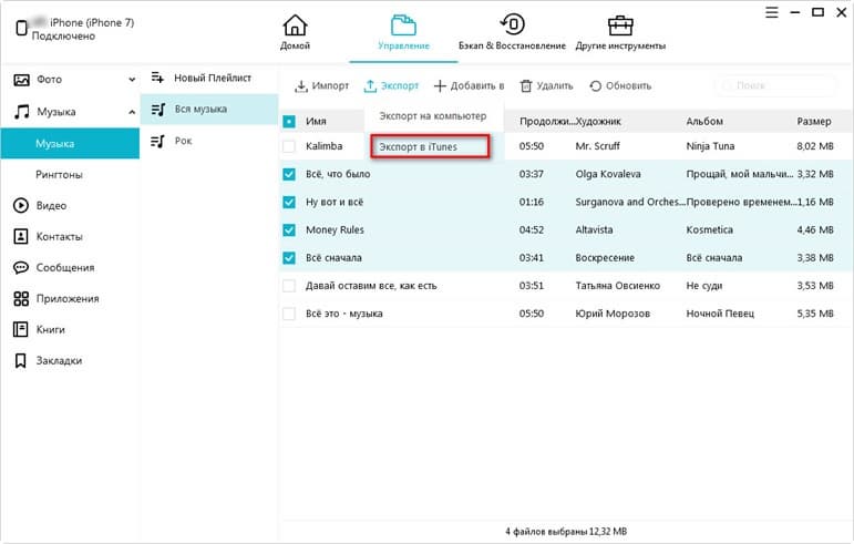 - Перекинуть музыку с компьютера на iPhone и обратно.