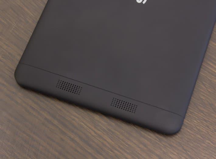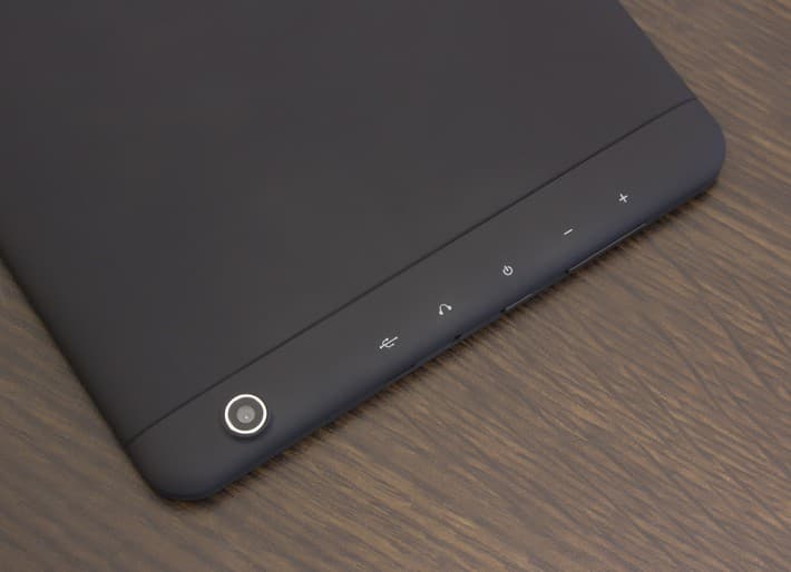Такой же лаконичной вышла и обратная сторона. Небольшие иконки для обозначения кнопок и портов, объектив камеры без вспышки, два динамика и техническая информация об устройстве. Все это выглядит едва заметным, так что от темно-серого корпуса ничто не отвлекает.