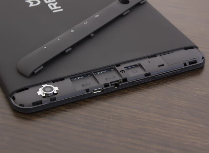 Все кнопки и разъемы вынесены на верхнюю грань, они находятся рядом с камерой. Там же расположилась и крышка, скрывающая слоты для двух SIM-карт и одной флешки формата microSD.