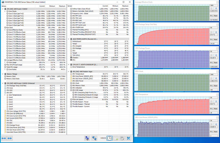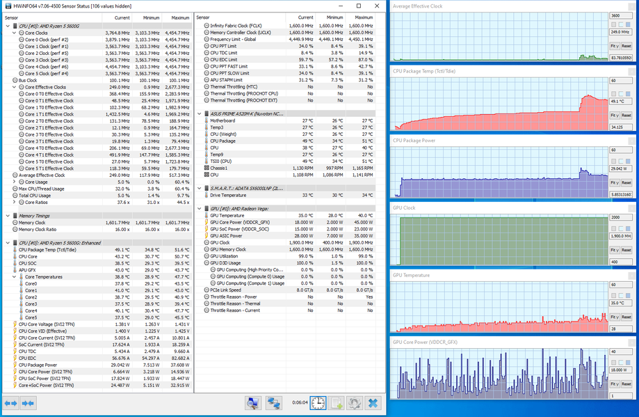 Параметры используемого в компьютере процессора AMD Ryzen 5 5600G приведены в начале материала, дополнительно приведём скриншот утилиты HWiNFO64: