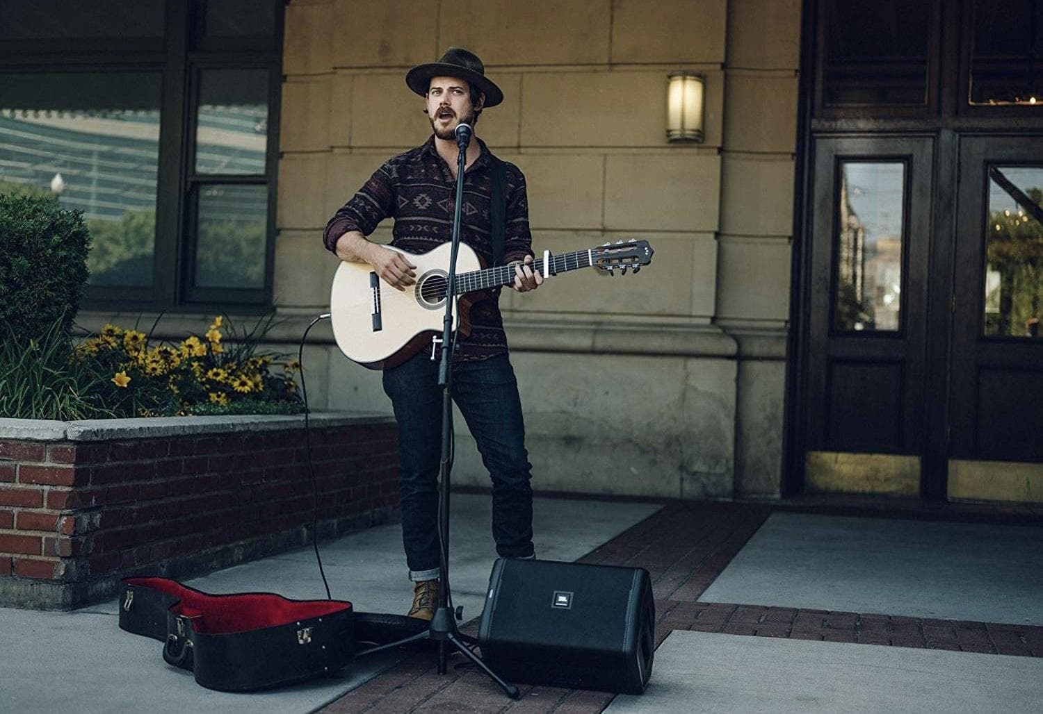 Бренд JBL — это не только потребительские устройства вроде Clip или Charge. В модельном ряду компании HARMAN есть и профессиональные решения для выступлений музыкантов и публичных мероприятий. Одно из них — это JBL EON ONE Compact — акустическая система, к которой можно подключить микрофон, гитару, диджейский пульт и любой другой источник звука. Ей не требуется отдельный микшер и даже подключение к источнику питания, все что нужно уже встроено в корпус этой компактной PA-системы.