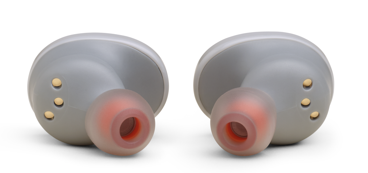 JBL TUNE 120TWS относятся к типу наушников, которые называют "true wireless" —полностью беспроводные. Они не связаны проводом между собой, каждый наушник — отдельно. Для подзарядки и для хранения они помещаются в футляр, имеющий собственный аккумулятор.