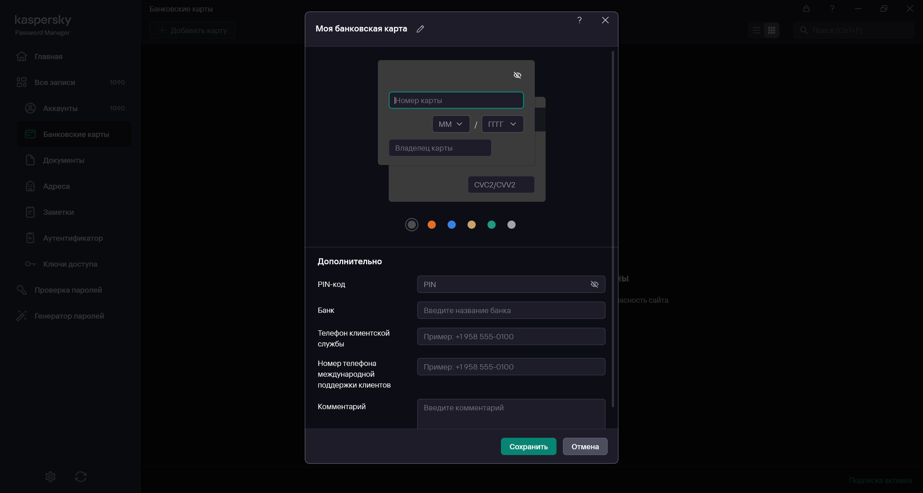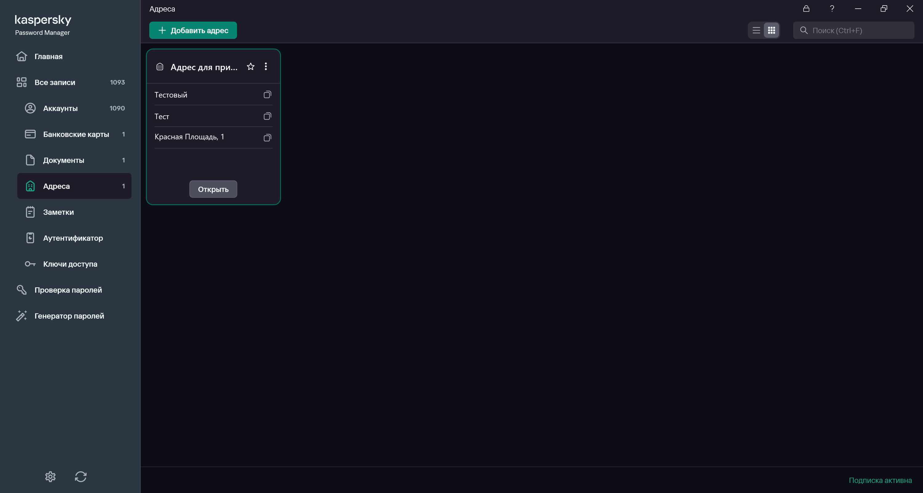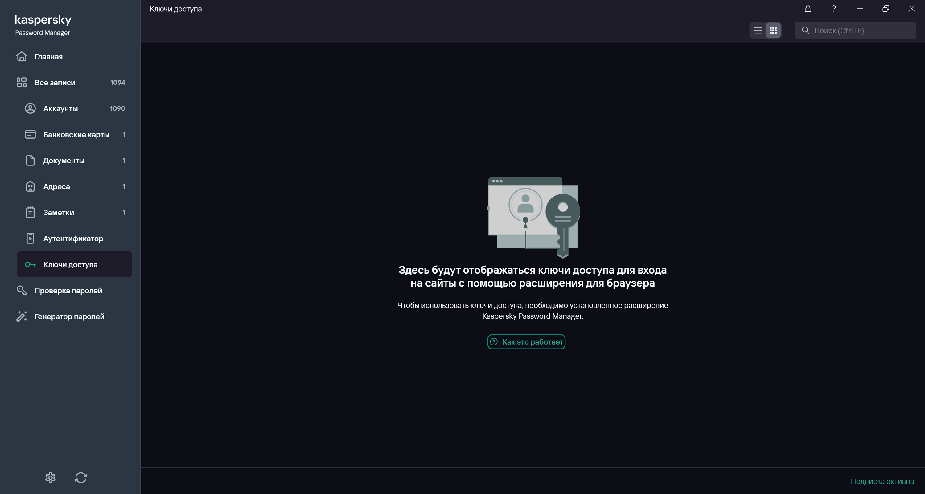 Доступны и данные авторизации, документы, карты – вся информация, добавленная в Kaspersky Password Manager. Для их просмотра придется ввести мастер-пароль. В общем, «онлайн-представительство» у Kaspersky Premium получилось полезным – в нем есть все функции, удаленный доступ к которым действительно имеет смысл.