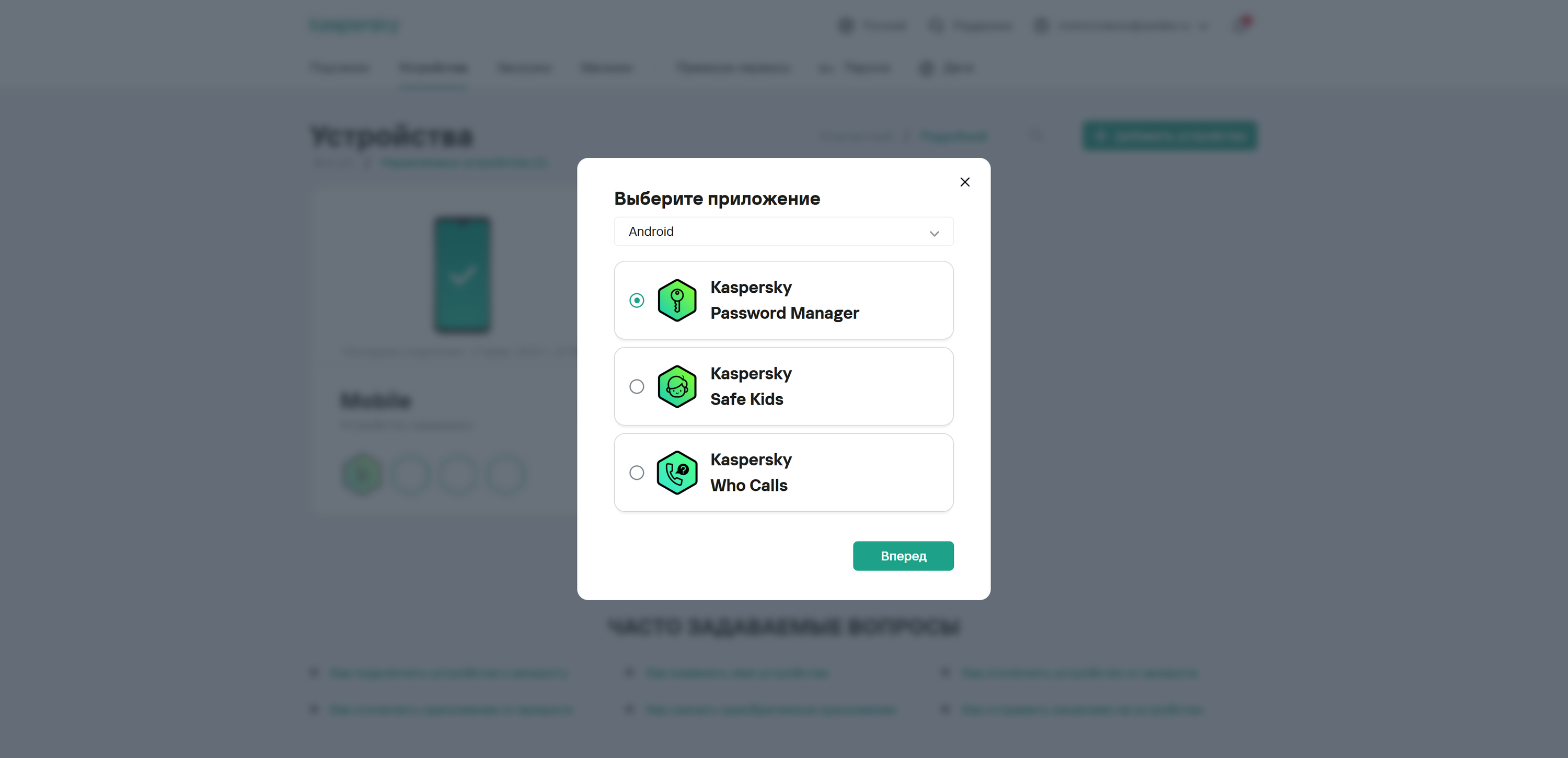 Подпиской мы планируем пользоваться по полной, так что доустанавливаем все предлагаемое. Для смартфона это еще три приложения: менеджер паролей (Kaspersky Password Manager), решение для обеспечения безопасности детей (Kaspersky Safe Kids) и определитель номера (Kaspersky Who Calls).