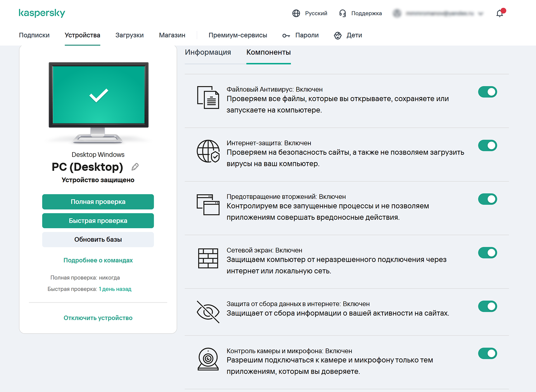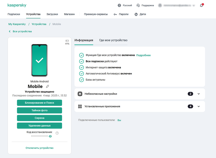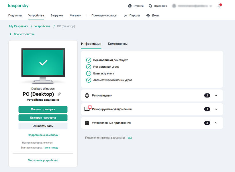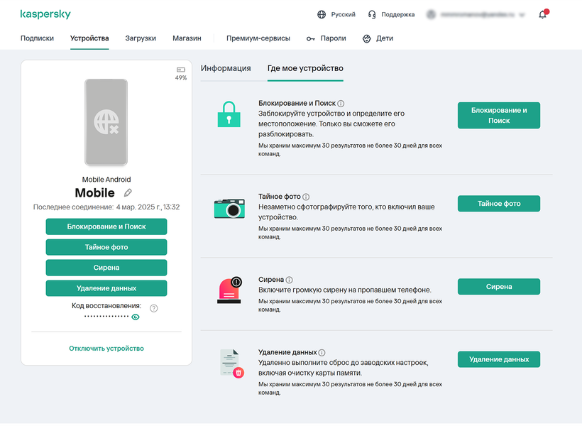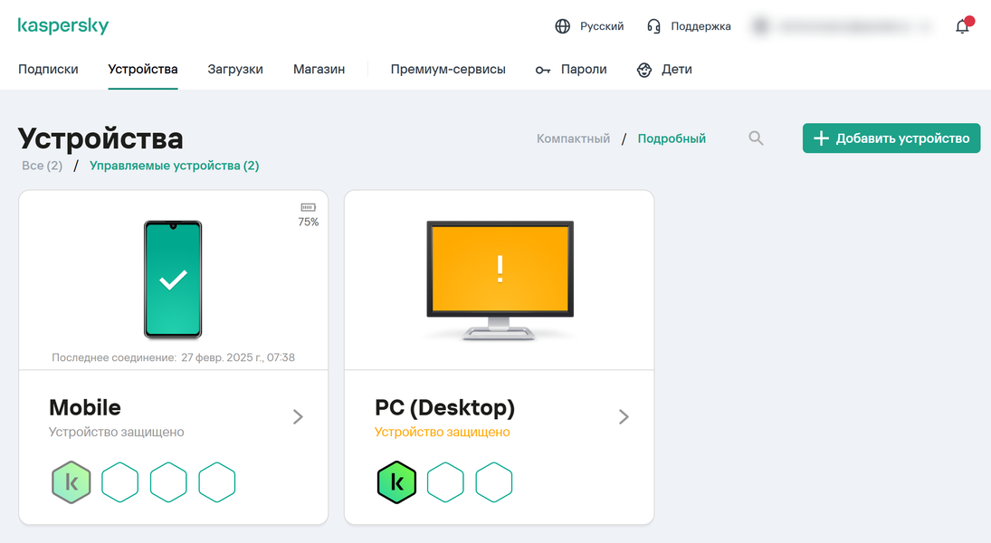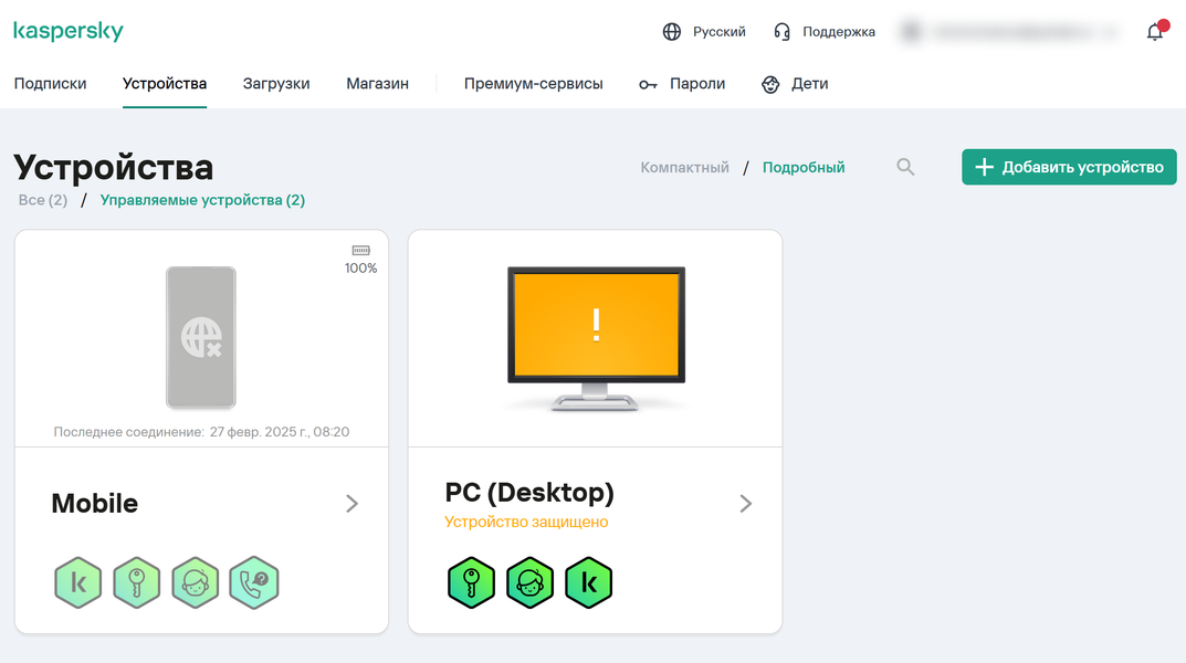 - Личный кабинет и удаленное управление в Kaspersky Premium