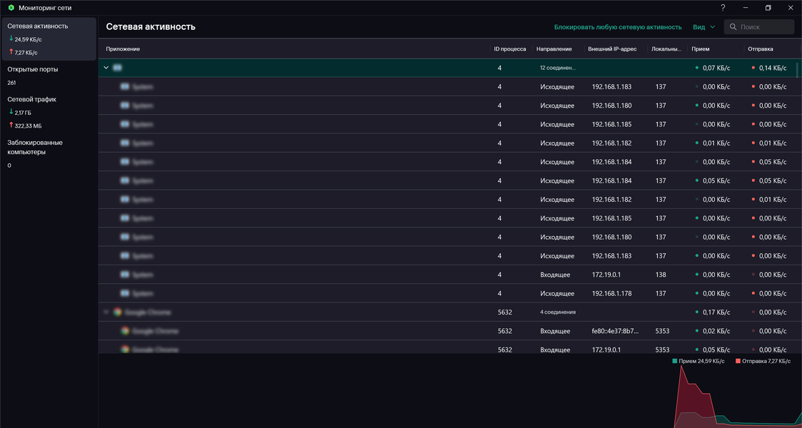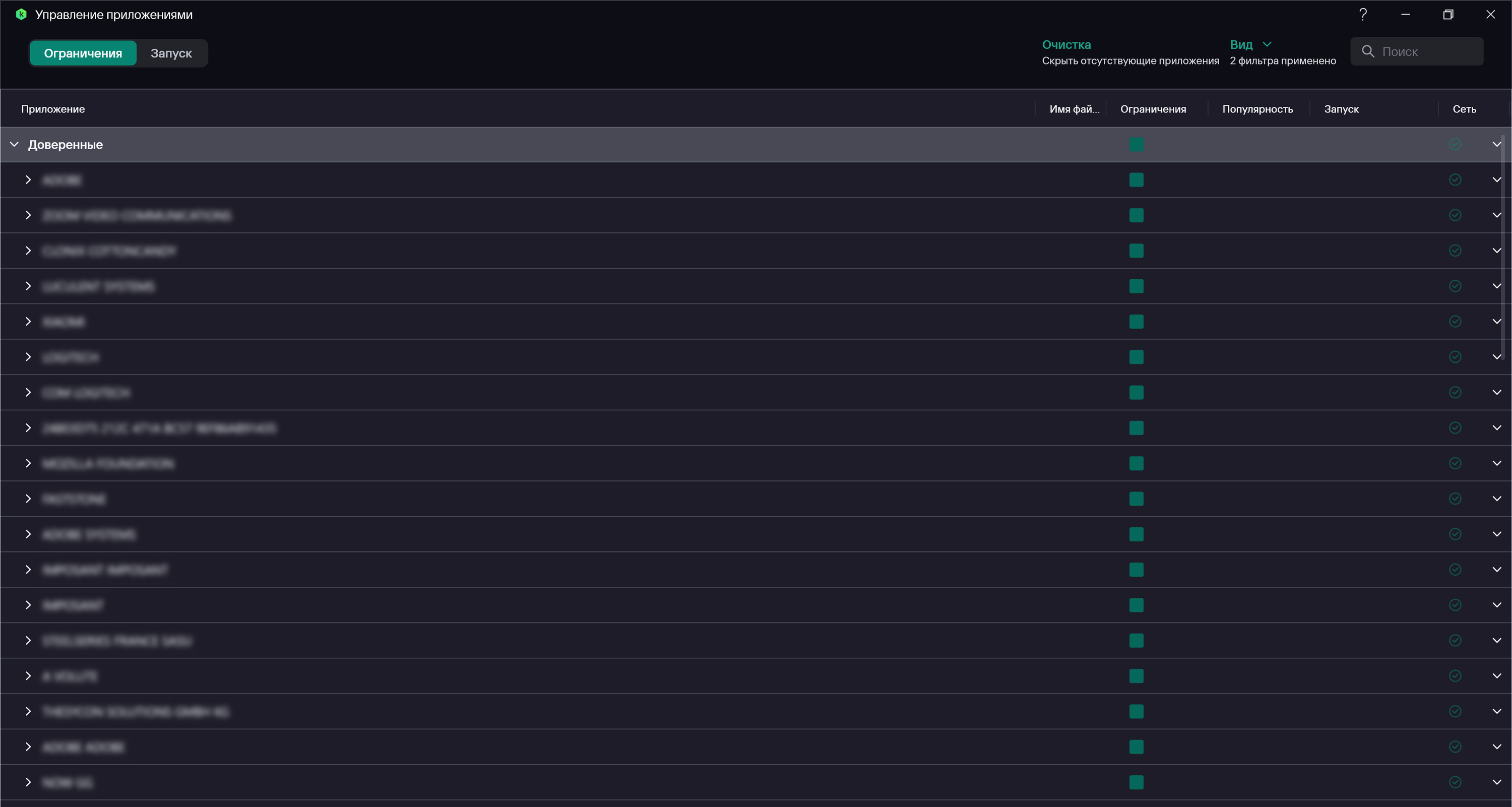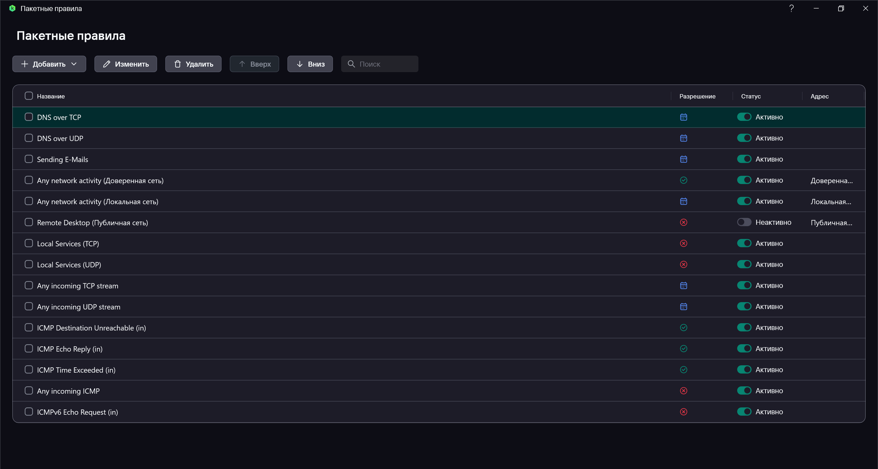 Собранные на странице модули помогают взаимодействовать с инструментами на все случаи жизни: можно прописать уровень доверия к разным приложениям, контролировать сетевую активность или создавать собственные сетевые правила.