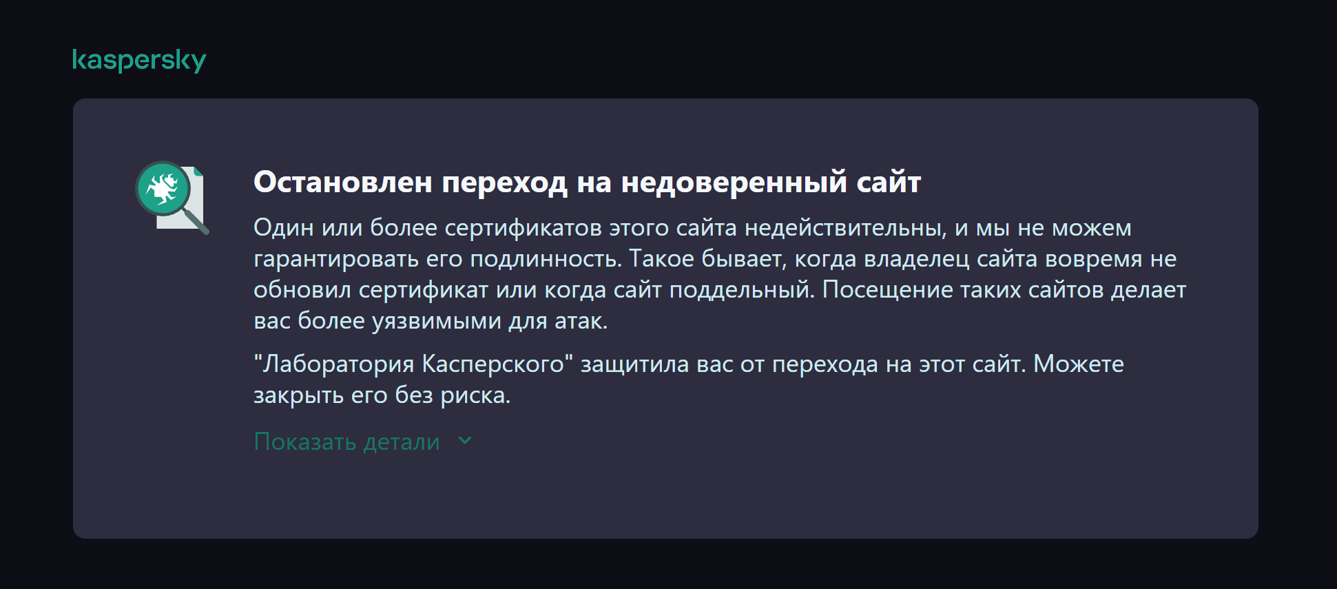 - Предупреждения при попытке перейти по фишинговой ссылке.