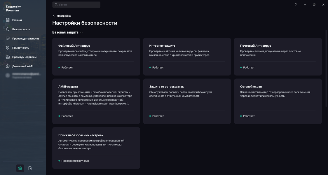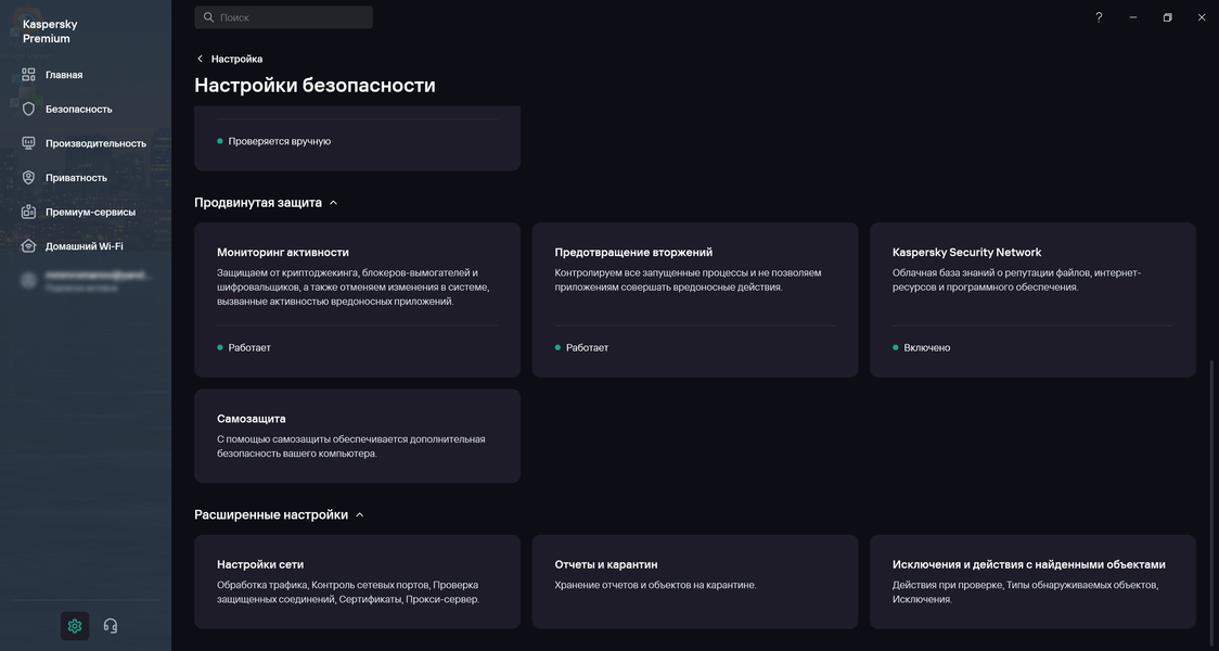 Kaspersky Premium — это не просто антивирус, а целый набор отлично интегрированных друг с другом приложений и инструментов для обеспечения безопасности. Настроить защиту пары-тройки устройств можно буквально за полчаса, если в наличии имеются хотя бы базовые навыки установки ПО. Если что-то пойдет не так, всегда можно обратиться за помощью к специалистам, которые помогут советом, а при необходимости – настроят все удаленно. Настраивается система за несколько шагов в ходе установки, при этом параметры по умолчанию отлично подойдут для новичков, но если хочется настроить все под себя, в наличии полный набор инструментов для продвинутых пользователей.