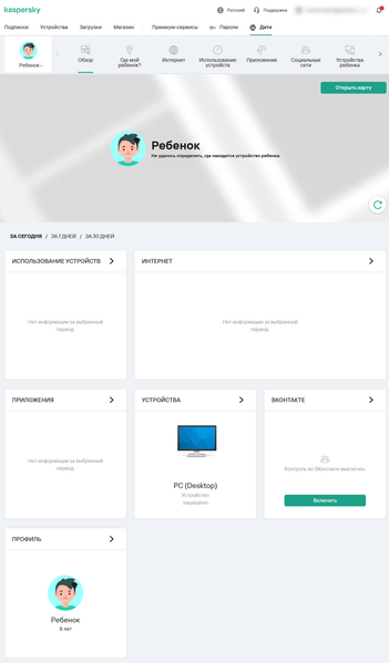 С ПК или ноутбуком тоже можно сделать много всего интересного – посмотреть текущее состояние защиты, запустить проверку на наличие киберугроз или принудительно обновить базы. Очень удобно, если защитное решение установлено у живущих отдельно членов семьи – родителей, например.