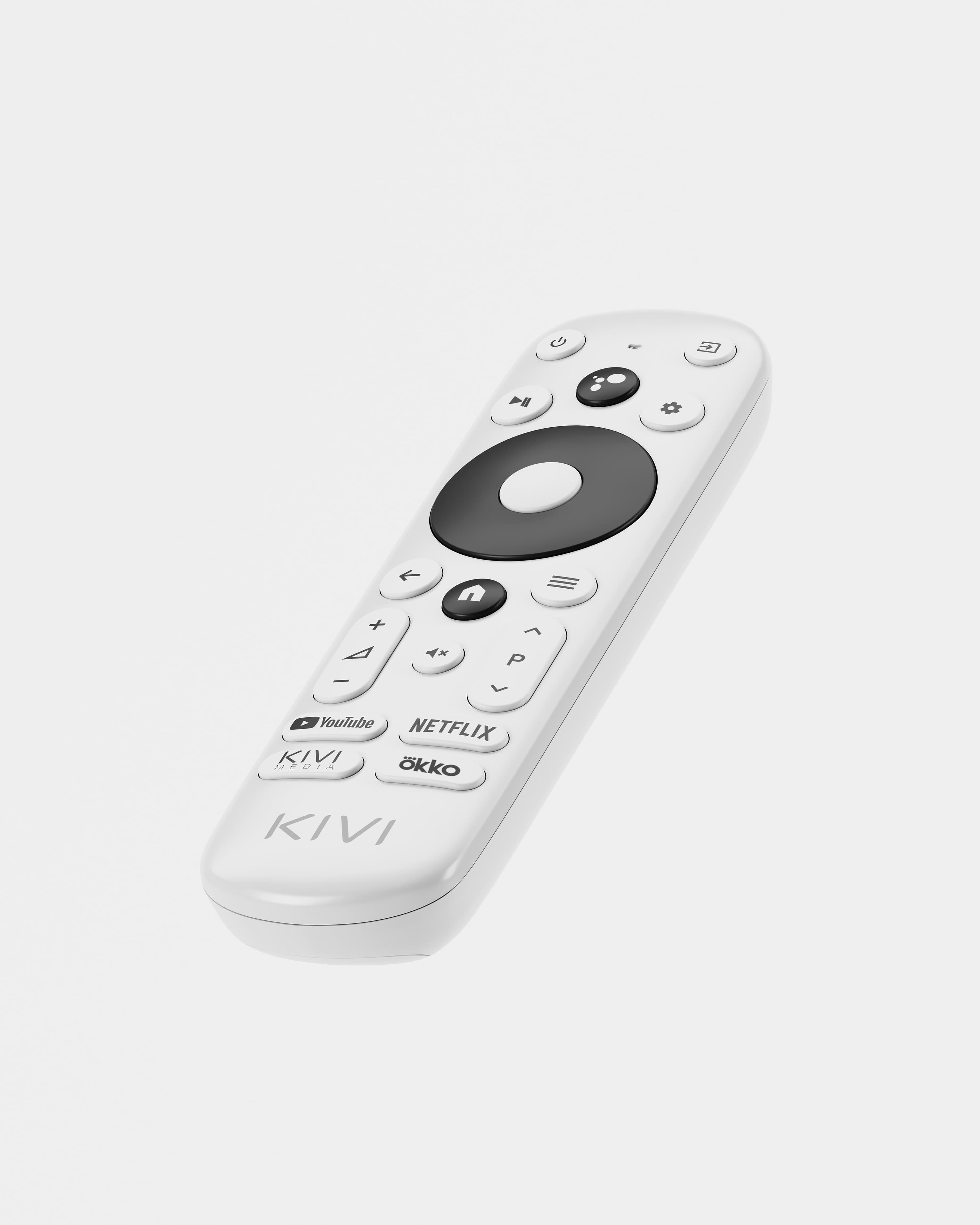 Пульт дистанционного управления разработан совместно с корейской компанией Remote Solution. Эргономика построена на базе исследований KIVI и Google: кнопки расположены максимально интуитивно. Работает пульт ДУ с помощью Bluetooth, оснащён микрофоном и «тихими» кнопками. Предусмотрена функция Air Mouse: с помощью гироскопа пульт имитирует курсор компьютерной мышки на экране телевизора.