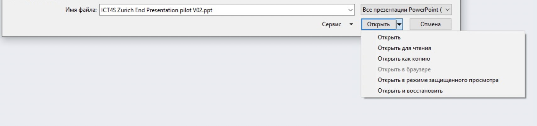 Если вам не так сказочно повезло, как хотелось бы, и диалоговое окно не появилось, то нужно пойти другим путем: PowerPoint – Файл – Открыть, затем в открывшемся меню выбрать «Открыть и восстановить».