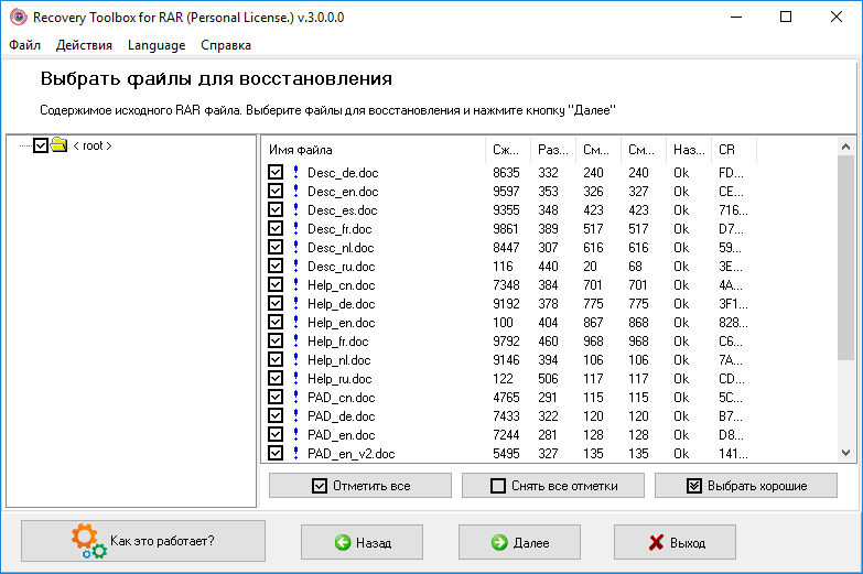Recovery Toolbox for RAR, конечно же, знает о контрольной сумме, но даже когда она не сходится, программа извлекает файл из поврежденного RAR0-архива. Пусть не полностью, а только частично, но это все же лучше, чем ничего.