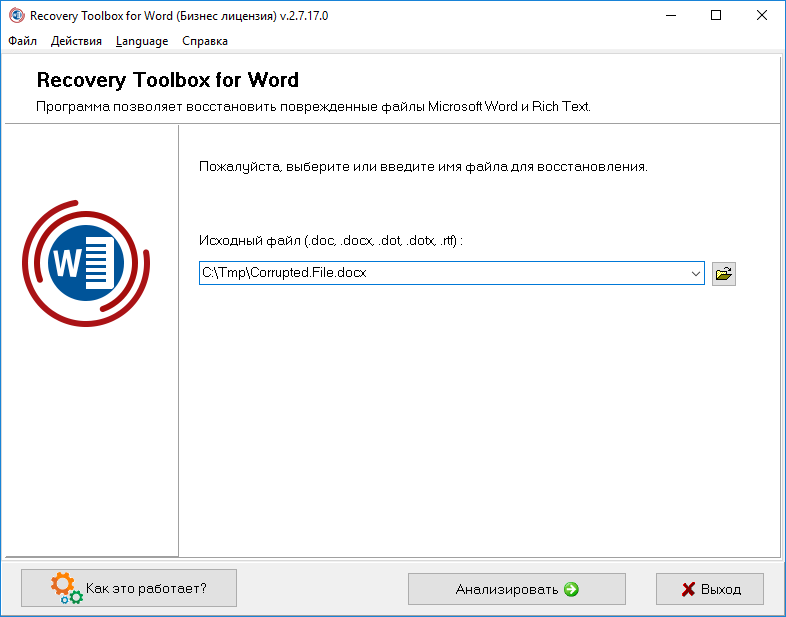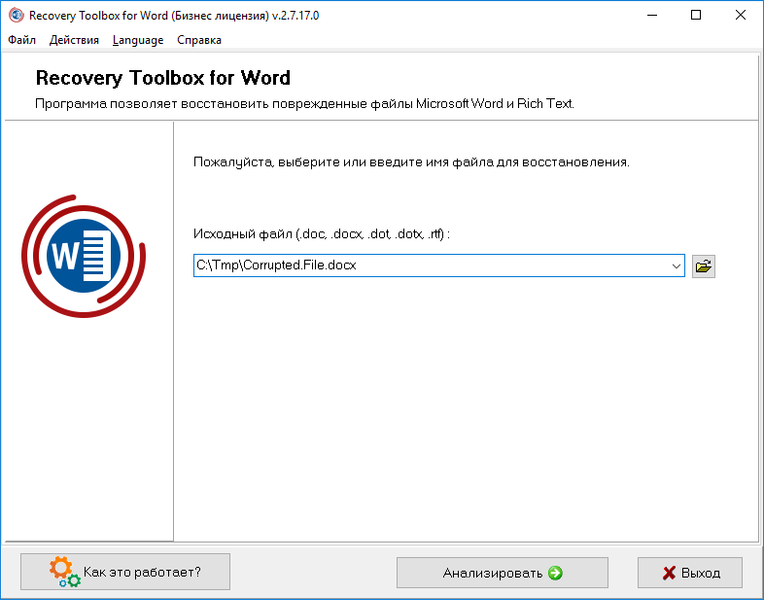 - Скачиваем и запускаем Recovery Toolbox for Word