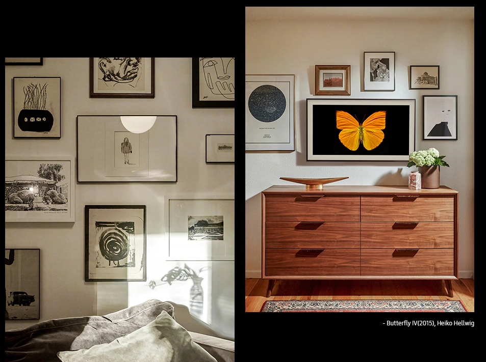 Благодаря приложению «Магазин Искусств» на телевизорах Samsung The Frame доступно около 1200 работ из признанных коллекций таких музеев, как Эрмитаж, Прадо, музей Ван Гога, Тейт, Альбертина, Королевских музеев изящных искусств (КМИИ) Бельгии и многих других, а значит, пользователи имеют возможность наслаждаться лучшими образцами мирового искусства: работами Боттичелли, Леонардо да Винчи, Эжена Делакруа, Питера Пауля Рубенса, Винсента Ван Гога, Питера Брейгеля Старшего и многих других. В режиме «Картина» The Frame отображает выбранные пользователем произведения искусства или фотографии, автоматически включаясь, когда люди находятся в помещении, и выключаясь, когда никого нет.