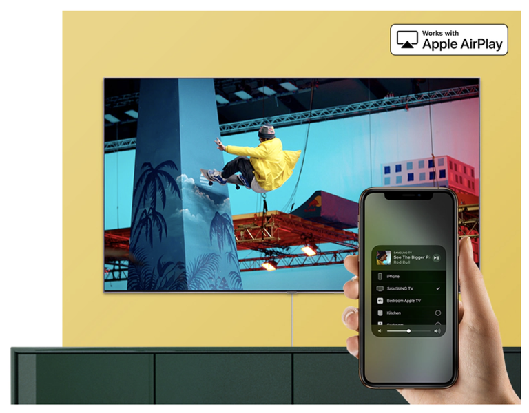 Для этого в телевизорах Samsung QLED TV 2019 есть сразу несколько технологий. QLED TV может подключиться к домашнему UPnP-медиасерверу (обычно это или сетевой накопитель, или просто домашний компьютер с медиатекой). Кроме того, Samsung QLED TV 2019 поддерживают технологию AirPlay 2, а значит, видео или музыку можно отправить на телевизор прямо с устройства Apple — смартфона, планшета, компьютера.