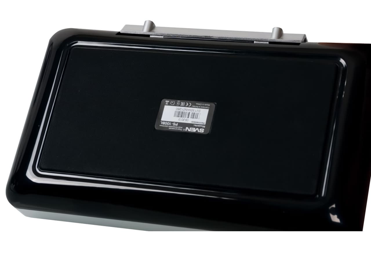 SVEN PS-100BL не скользит на гладких поверхностях, т.к. основание колонки имеет ребристую резиновую поверхность.