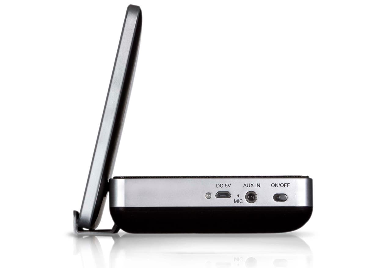 Установив свой планшет или смартфон на удобную прорезиненную подставку колонки, вы можете смотреть видео с хорошим звуком, слушать музыку и даже пользоваться конференц- связью, так как в колонку встроен микрофон.