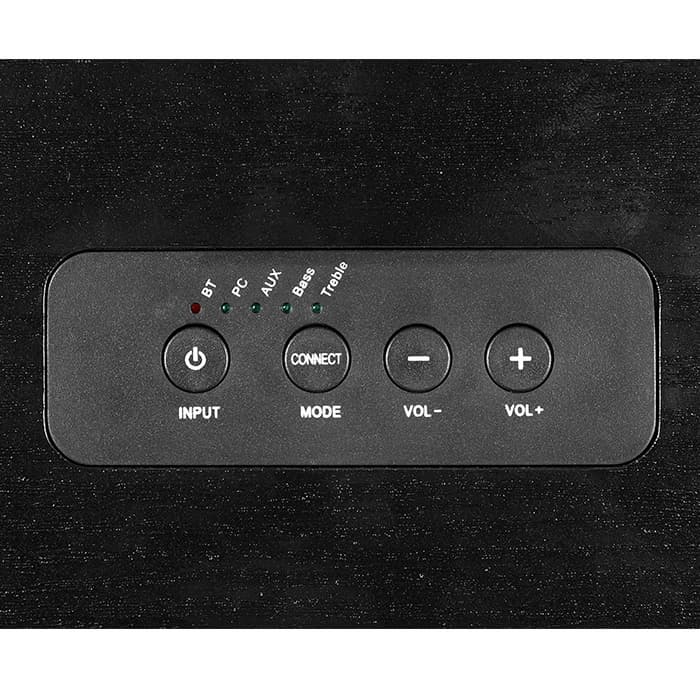 С помощью удобной панели управления, расположенной на верхней части активной колонки, можно регулировать громкость, настраивать высокие и низкие частоты, переключаться с одного источника звука на другой. В комплекте также есть удобный и функциональный пульт управления.