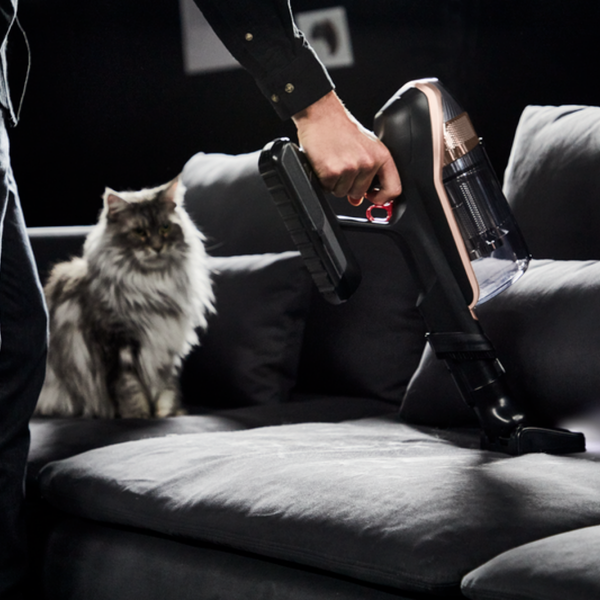 То для уборки их шерсти с мягкой мебели в Tefal X-Force Fleх 15.60 имеется специальная электрическая турбощетка. Как и основная насадка, она оснащена мотором и вращающимся валиком, который собирает шерсть питомцев с подушек, диванов и лежанок. Если же у вас просто нет котика, но есть диваны (кстати, с Tefal X-Force Fleх 15.60 можно смело заводить шерстяного друга), то для них, а также для покрывал и матрасов модель укомплектована и эффективной, но не моторизованной насадкой для мягкой мебели: зачем зря расходовать заряд аккумулятора.